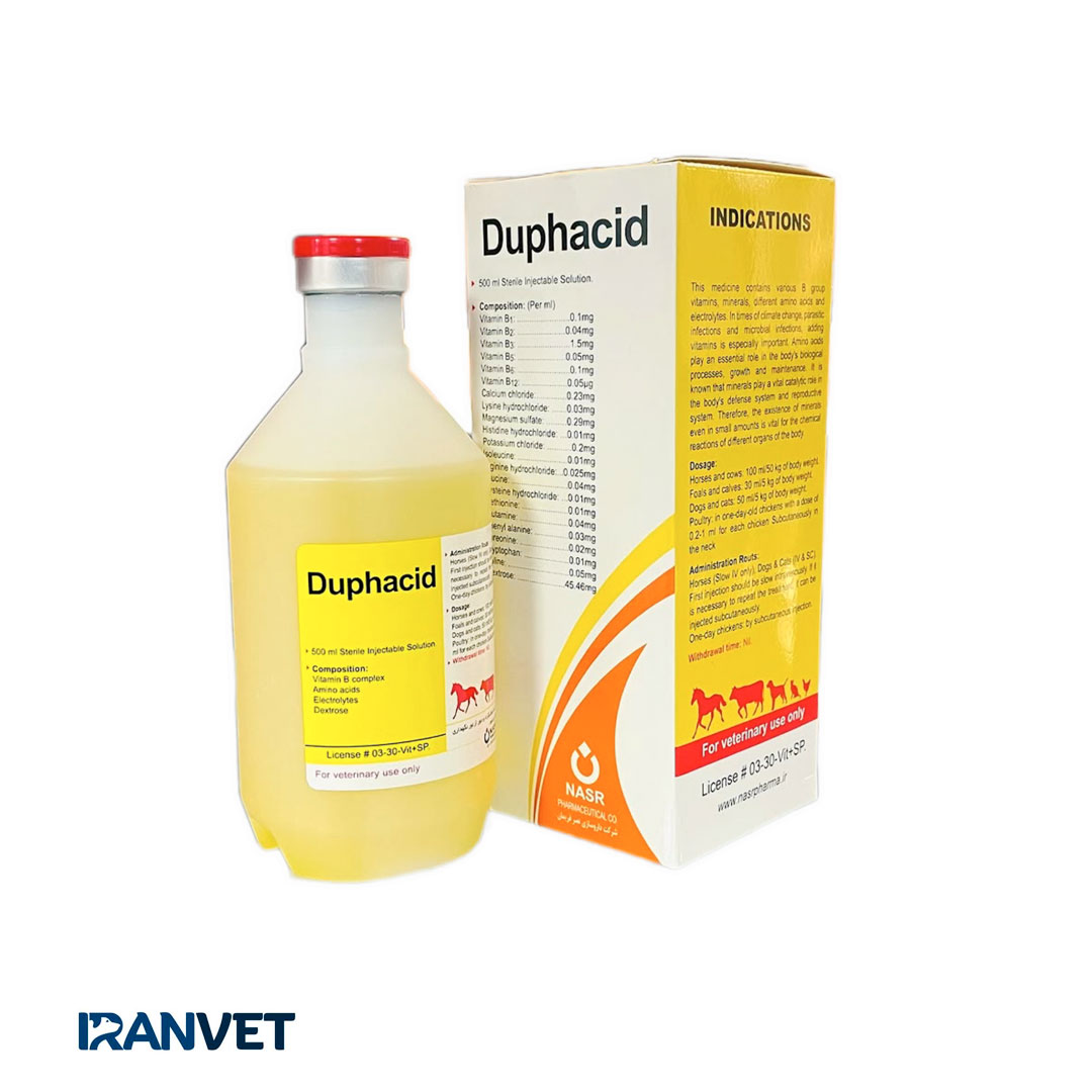 این دارو حاوی انواع ویتامینهای گروه B ، مواد معدنی، آمینو اسیدهای مختلف و الکترولیتها است. در زمان تغییرات آب و هوایی، آلودگی های انگلی و عفونتهای میکروبی افزودن ویتامینها اهمیت خاصی دارد اسیدهای آمینه در طی فرآیندهای بیولوژیکی بدن رشد و نگهداری بدن نقش اساسی دارند مشخص شده است که در سیستم دفاعی بدن و سیستم تولید مثل مینرالها نقش کاتالیزو حیاتی را بر عهده دارند لذا وجود مینرالها در مقدار حتی کم برای واکنشهای شیمیایی ارگانهای مختلف بدن حیاتی میباشد.