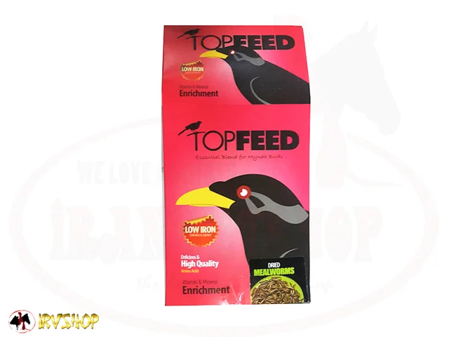 این غذای پلت غنی شده با آمینو اسید و مخصوص مینا تهیه شده است.غذای خشک مرغ مینا با میل ورم تاپ فید حاوی کرم جهت تغذیه بهتر مرغ مینا میباشد.